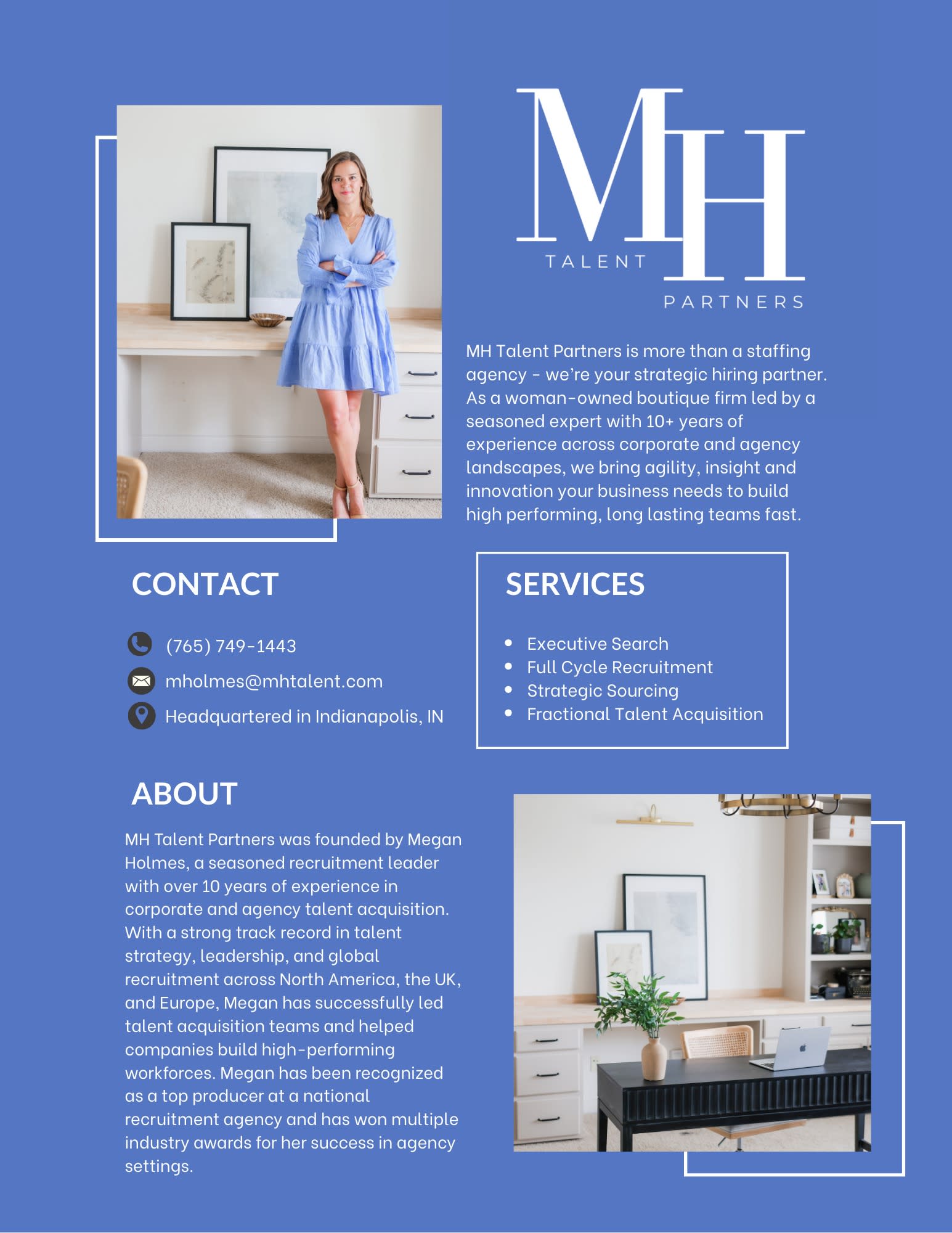 MH Talent Partners is more than a staffing agency - we’re your strategic hiring partner. As a woman-owned boutique firm led by a seasoned expert with 10+ years of experience across corporate and agency landscapes, we bring agility, insight and innovation your business needs to build high performing, long lasting teams fast.